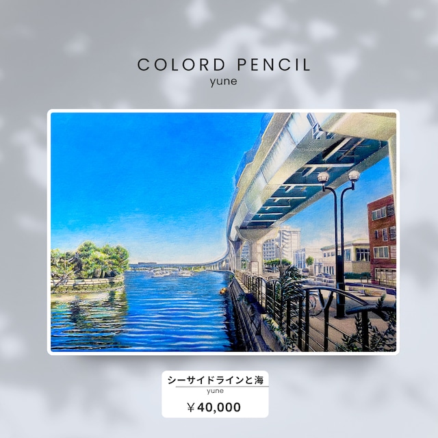 かつて八つの景勝地を抱いていた金沢の地。 風景は時代とともに姿を消しました。 それでも森と海の気配は、今も静かに息づく。 大きな橋が景観を塗り替え、影を落とす。 しかしその影があるからこそ、 差し込む光は、より鮮やかに街を照らします。 消えゆく景色と、今ここにある光。 見えるものは変わっても、 この街がもつ、優しさや懐かしさ、 心を落ち着かせる感覚は、変わらない。 過去と現在のあわいに立ち上がる、一瞬の輝き。 光彩" 額装込み 使用画材 KARISMACOLORE PC903 PC930 PC916 PC938 PC935 be art paper B3 B3サイズ フィキサチフ (色落ち防止剤) ご覧頂き誠にありがとうございます。 色鉛筆5色でシーサイドライン金沢八景駅の高架下 を描きました。 *額縁は筆者が作品に合わせて選定しますので色などをご指定出来ませんのでご了承下さい。 *全て手描きのハンドメイド作品です。 *1枚目は実物の原画に近くなるように画像編集している写真です。2枚目が実物写真ですので必ずご確認の上ご購入下さい。 #色鉛筆 #原画 #イラスト #夏 #ハンドメイド