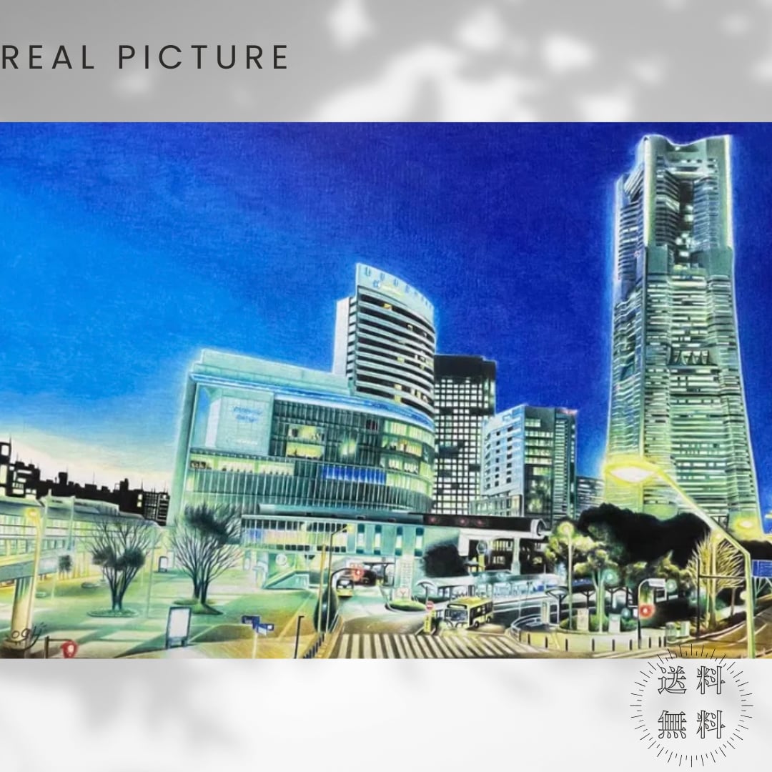 ブルーライトヨコハマ 色鉛筆画 原画 色鉛筆 横浜 風景画 イラスト 絵